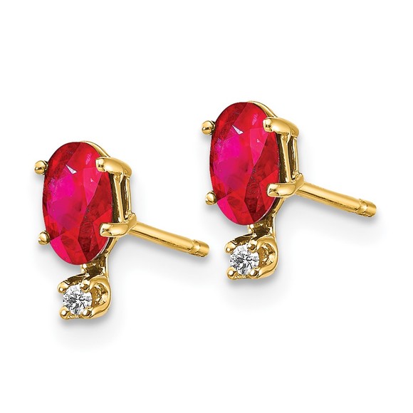 Million Charms 14k Yellow Gold Diamond & Ruby Birthstone Earrings, 0.43 grams metal weight. Fine Jewelry Earrings, Ball & Button EarringsBirthstone Earrings, JulyBirthstone Earrings, Birthstone & Diamond Earrings Polished, 14k Yellow gold, Post, Diamond, Ruby, Genuine Fine Gemstone Jewelry 14K, Stone Type-1: Ruby, Stone Type-2: Diamond, Stone Color-1: Red, Stone Color-2: White, Stone Quantity-1: 2, Stone Quantity-2: 2, Length: 7 mm, Stone Weight-1: 0.34 ct, Stone Weight-2: 0.008 ct, Stone Clarity-2: I2 (A), Stone Shape-1: Oval, Stone Shape-2: Round, Stone Size-1: 5.00 x 3.00 mm, Stone Size-2: 1.2 mm, Stone Treatment-1: Heating, Width: 3 mm, Product Type: Jewelry, Jewelry Type: Earrings, Sold By Unit: Pair, Gender: Women´s, Material: Primary - Color: Yellow, Earring Closure: Post & Push Back, Earring Type: Stud, Stone Cut-1: Faceted, Stone Cut-2: Faceted, Stone Creation Method-1: Natural, Stone Creation Method-2: Natural, Birthstone Month: (07) July, Birthstone Month-1: (07) July, Birthstone Month-2: (04) April, Stone Color Grade-2: G-I, Stone Quality-1: C, Earring Style: Birthstone