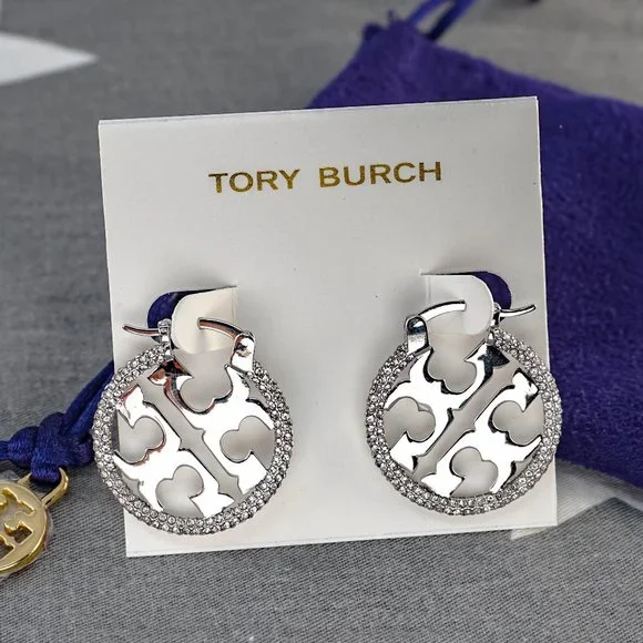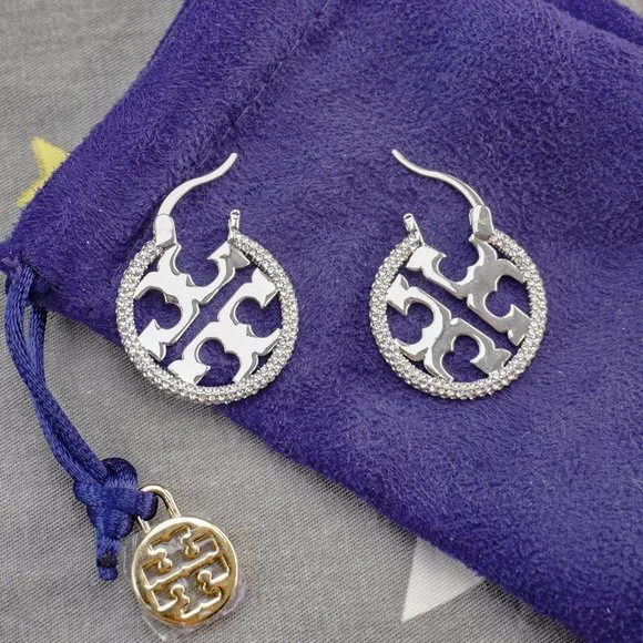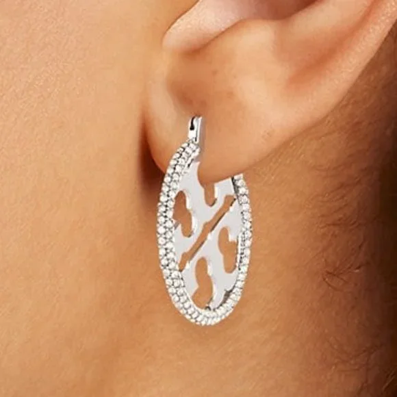 $228 Tory Burch Miller Pavé Small Hoop Earrings (Brand New with Dust Bag)