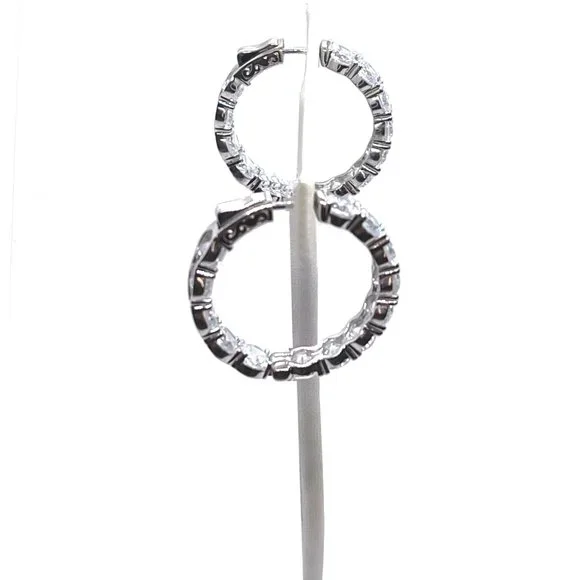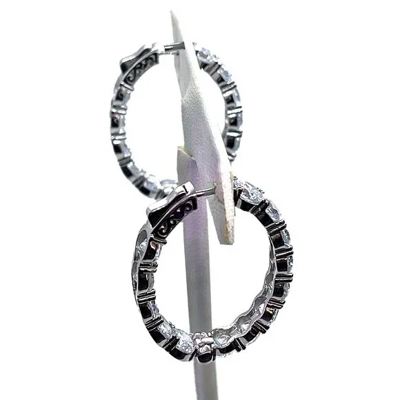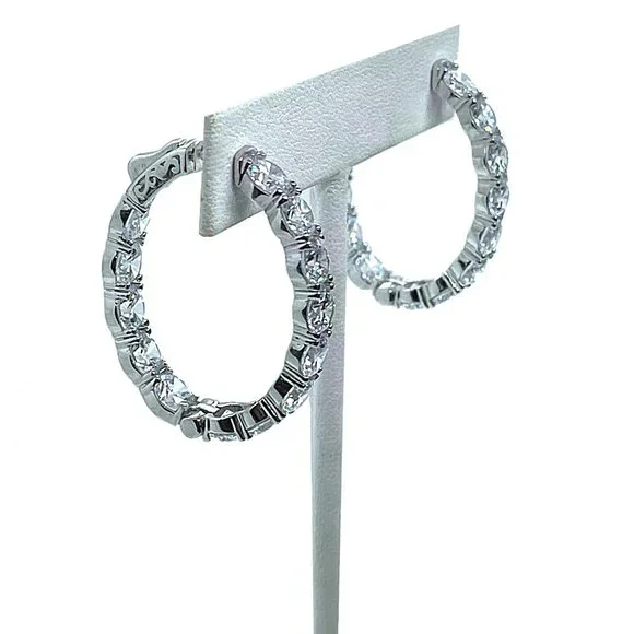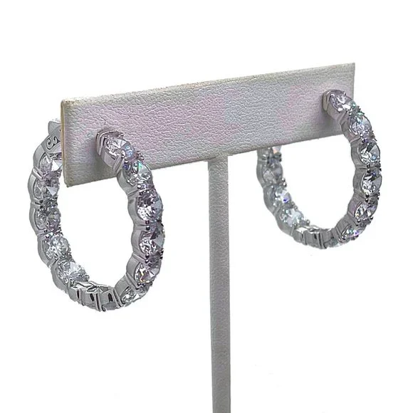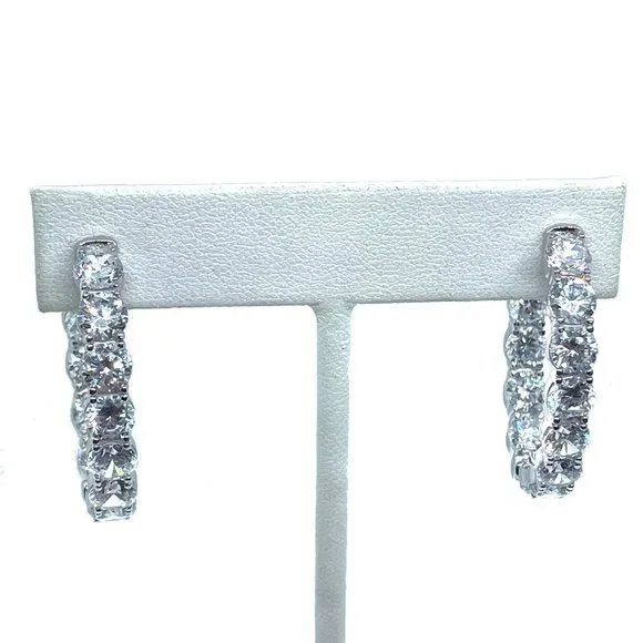 I´m a designer for one of the nation´s top jewelry brands when it comes to celebrity jewelry. Borrowed Bling has been supplying jewelry to the TV industry for 20+ years and has been featured in Marie Claire, Newsweek, Good Housekeeping, Cosmo Italia, The Wall Street Journal, etc. They have also been seen on E News, The Tyra Banks talk show, KTLA News, The Today in New York show, etc. They are known for their simulated "diamonds", which look SO visually identical to naturally grown diamonds that they can even fool many jewelers - So they DEFINITELY look real enough to fool your friends!These are as close to real as you´re ever going to get for under $300!Their $295 wholesale price is being marked up in stores to over $649, so prices here are FINAL & FIRM!I am FINALLY allowed to sell some of their top selling designs here on PM.These come in round OR oval shape - Your choice after purchasing!DETAILS:Prong-set with 14 round stones (4.75mm / just under 1/2 carat each) for 11.2 carats total / Hoop measures 1.25" in size / 12 grams of silver that has been sealed in rhodium-platinum so they won´t tarnish.Huggie style so they go all the way around and the post clips into a patented SECURITY lock in the back of the lobe so they can not open or come off until you depress a little lever in back. Stones along the front and inside back of hoop.For video of OVALS: https://shop.borrowedbling.com/product/hoop16-missed/ Comes with a 6 month free stone repair warranty.