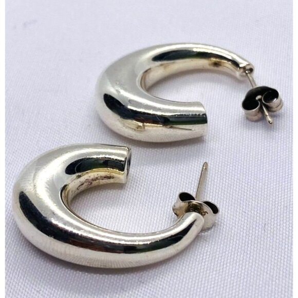 Tiffany & Co Sterling Silver 925 J Hoop EarringsEarrings Measure 24x18.7mmSterling Silver 925Earring is hallmarked T & Co 925Post if hallmarked T & Co 925Backs are not tiffany