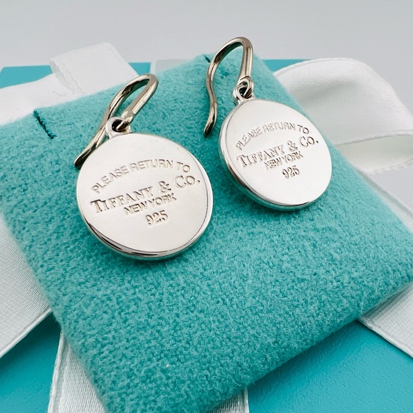 Return To TiffanyRound Tag Dangle Earrings*** Please review all photos carefully. Item comes with pouch or box that available at the time of purchase.