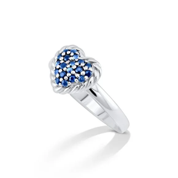 This is an exquisite piece of jewelry, a ring that exudes elegance and charm. The ring is crafted from silver, with a approximate 3mm band that adds to its delicate appeal. The crowning glory of this ring is the heart-shaped cluster of blue sapphires that adorns the top. The sapphires, round in shape, are arranged in a captivating gradient, transitioning from darker to lighter shades of blue. This thoughtful arrangement enhances the visual appeal of the ring, making it a truly charming piece, the ring stands out as a symbol of beauty and sophistication. Whether worn for a special occasion or as a daily accessory, this blue sapphire ring is sure to turn heads and capture hearts.At CHC Fine Jewelry, we take pride in offering customization options to make your jewelry truly one-of-a-kind. Whether you prefer a personalized engraving or any other alteration, we are here to bring your vision to life. Additionally, our commitment to quality extends beyond the design phase – every purchase is backed by a 365-day warranty, ensuring your peace of mind. As a small local brand, we deeply appreciate your support. Thank you for choosing CHC Fine Jewelry, where craftsmanship meets individuality.Specifications:Solid Sterling Silver 925 with 18k white gold platingPolished FinishRing band: 2.90mm, head: 9.85mm x 10.65mmHandcrafted in New YorkComplete with a Pouch, Cleaning Cloth, Box, and Certificate of Authenticity