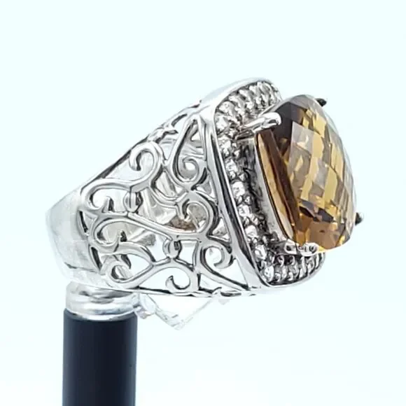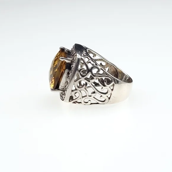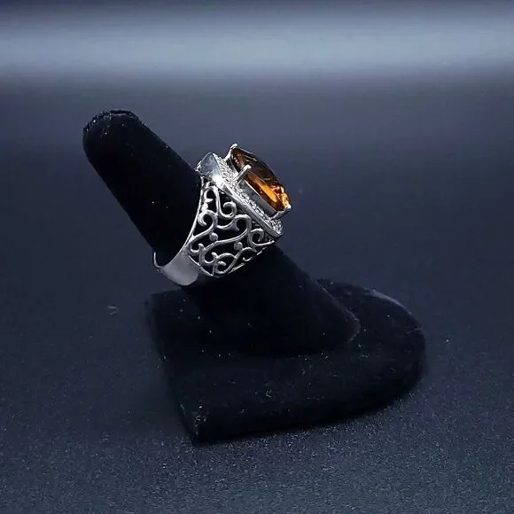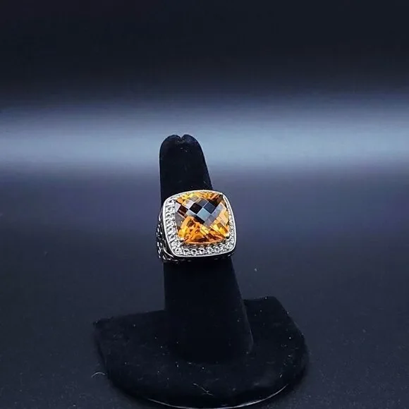 Gorgeous statement ring!!!Yellow-orange Honey Topaz is 10.5 carats with a halo of white sapphires set in rhodium plated sterling silver (will not tarnish!!) Size 7 - can be...