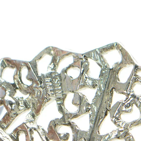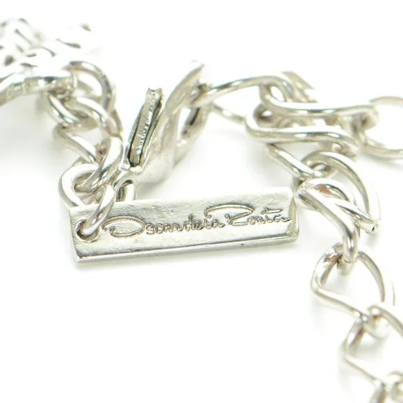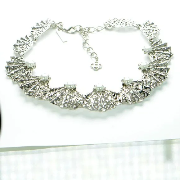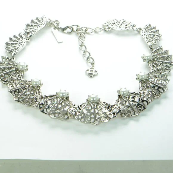 100% Authentic! Oscar de la Renta Crystal & Faux Pearl Filigree Fan Necklace