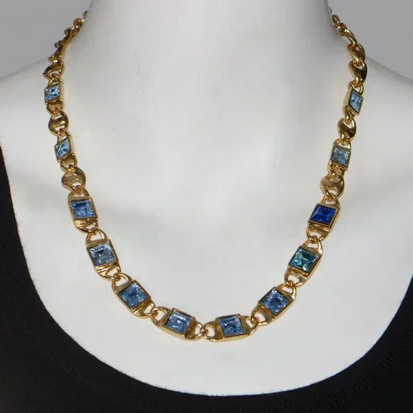 100% Authentic! Oscar De La Renta Crystal Chain Link Necklace
