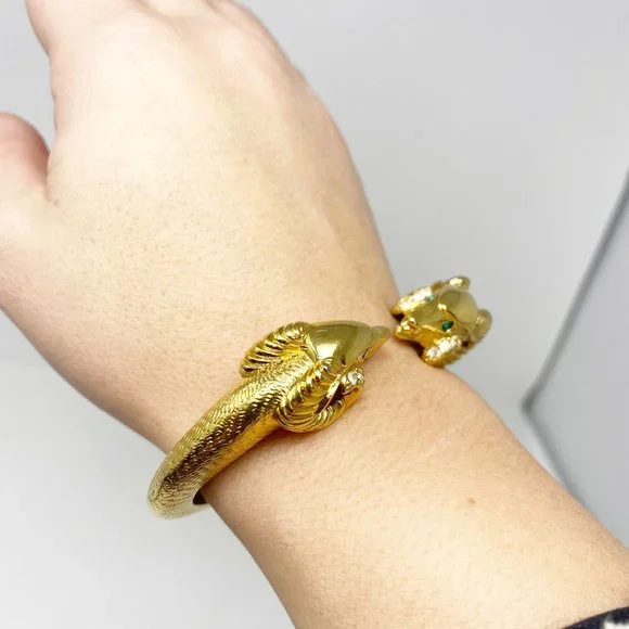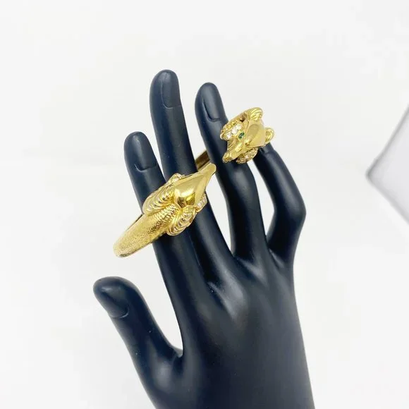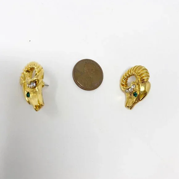 490 Vintage Avon Kenneth Jay Lane ram necklace, earrings and bracelet jewelry setA limited edition designed by KJL for Avon. Lane, a highly regarded costume-jewelry designer, created jewelry for Avon between 1986 and 2005. The iconic Avon, founded in 1886 by David H. McConnell as the California Perfume Company in New York City, was a multi-level marketing business selling perfumes and lady’s toiletries. Renamed Avon Products Inc., in 1938, the company began producing costume jewelry in 1963 as free gifts to boost product sales. The first jewelry collection included in the Avon catalog in 1971, kicked off Avon’s emergence as the world´s largest costume-jewelry producer, using contemporary materials such as Lucite, Bakelite, and other materials significant of the era in which it was created.Gold tone, rhinestone, beads marked K.J.L. for AVONPlease see pictures for approximate measurements and condition.Excellent vintage condition with expected signs of wearand patina from vintage item.We use a standard size small bust for display photos. Please double check measurement photos before purchase as we don´t accept returns. Thank you for your interest!RHF490