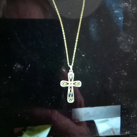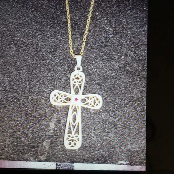 1/20 14kt gold red ruby gold cross ...beautiful necklace