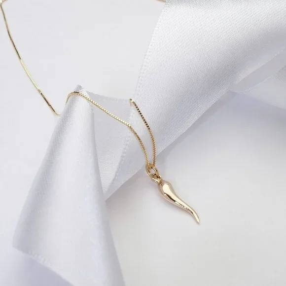 This Tiny Petite Cornicello Charm Necklace is lovely and dainty making it the perfect symbol for Good Luck & Protection Charm!This well known symbol of luck, crafted from 10k...
