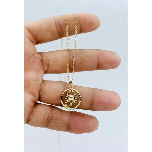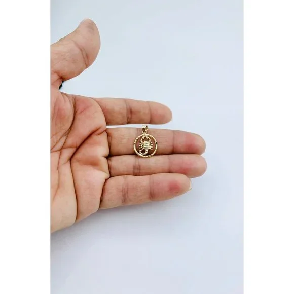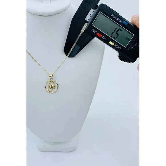 ❤️ 10k gold pendant scorpion and necklace ❤️ Scorpion Approx 15mm diameter ❤️ dainty yellow gold necklace 18” long ❤️ Small Scorpion in circle ❤️ New fine jewelry ❤️ women or boy o girl Checkout my other jewelry ❤️ Dije y cadena colgante de oro de 10kilates❤️ Escorpión pequeño de mujer o niño o niña 15 milímetros ❤️ cadena disponible 18 pulgadas y 1.5 milimetros de ancho ❤️ Oro dorado❤️ Incluye cajitaSKU 41542