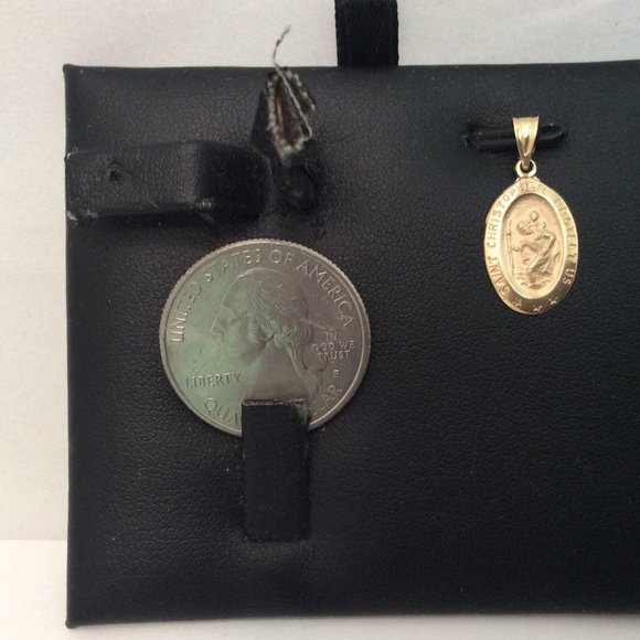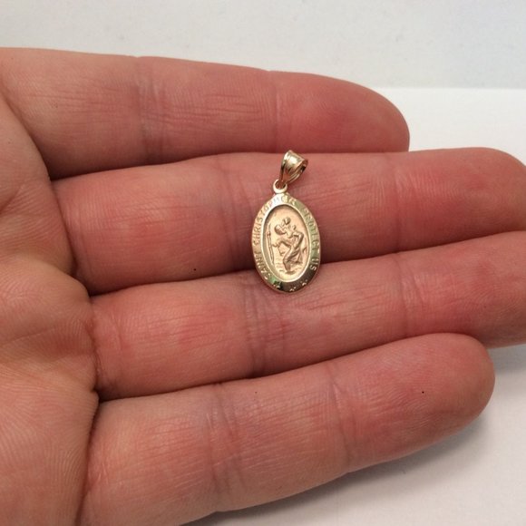 10KYELLOW REAL GOLD MEDALLION PENDANT SAINT CHRISTOPHER PRAY FOR US 1.20 GRMetal Type: 10K Solid Yellow Real GoldWeight: 1.20 GramsWidth: 1/2 Inch WideLength:3/4 Inches Long with bailcomes with a gift box