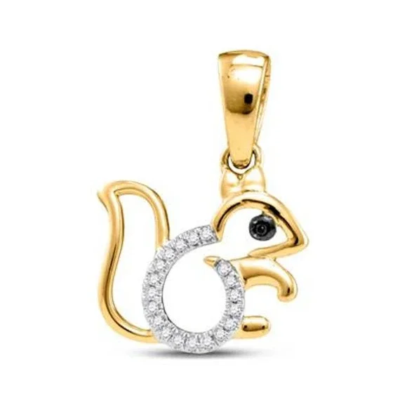 0.05 CT Solid 10K Yellow Gold Real Genuine Diamond Squirrel Pendant Necklace 18"