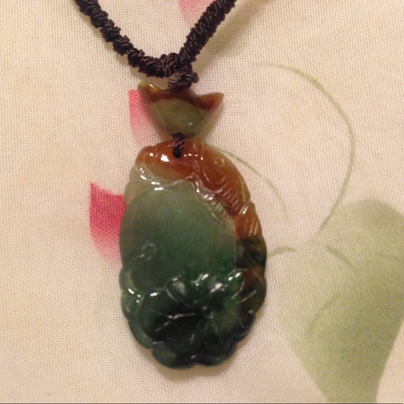 This have abundance year after year necklace real jade, it´s is natural and grade A jade. in the top on left side of this jadependant is carved in to a fish and the down...