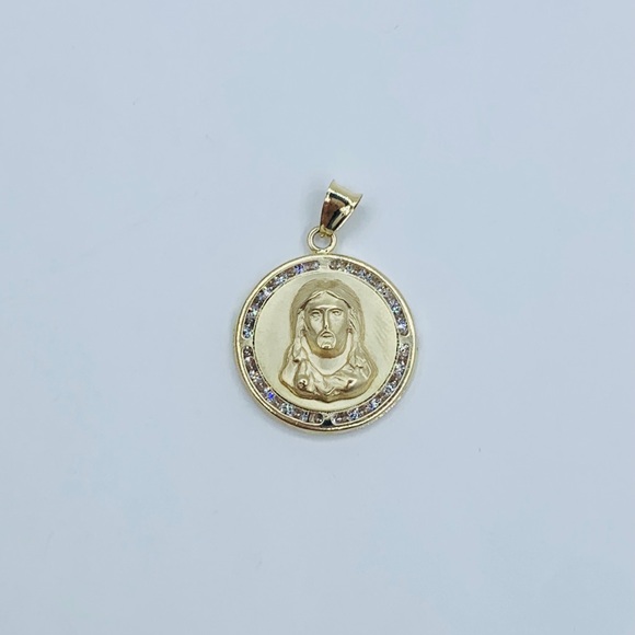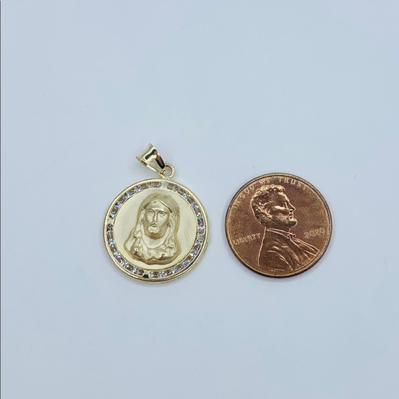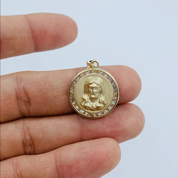 ❤️ 10k Solid Gold Pendant Jesus Medal ❤️19mm ❤️ Yellow gold ❤️ white cubic zirconia Necklace Not IncludedNew jewelry ❤️ Medalla de Jesús ❤️ Dije de Oro de...