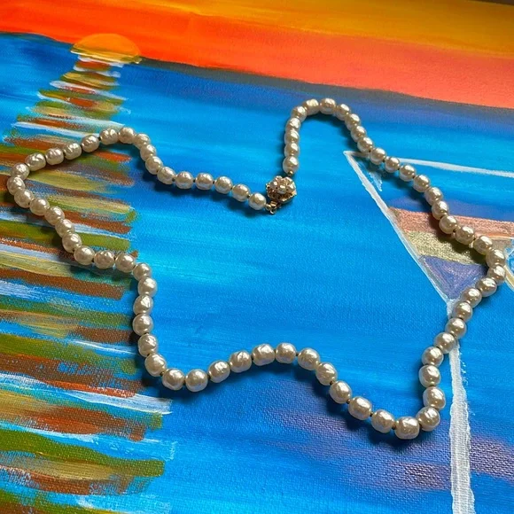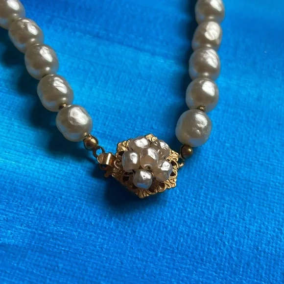 Vintage authentic women’s necklace in great condition.Golden iconic clasp with flower shaped pearls and marked.Rare and collectible.