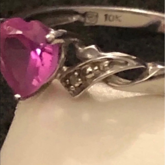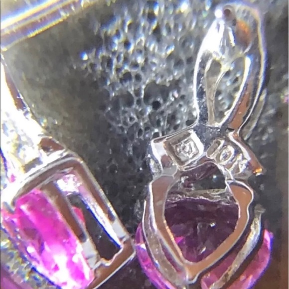 New came in jewelry box, only the original box it’s Damaged 10K Solid White Gold , encrusted Authentic Pink Ruby and Authentic Diamonds Set .Came all in the pics.10k real white...