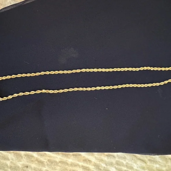 This elegant gold rope chain necklace adds a touch of sophistication to any outfit. Perfect for any occasion.