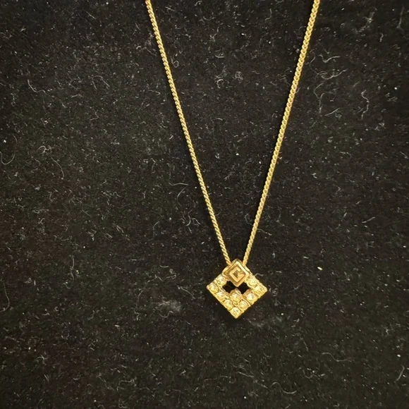 Dazzling gold necklace with crystal accents. Perfect for adding sparkle.Item is Preowned.Jewelry may show minor signs of rubbing, scratching, tarnish, or oxidation. Hardware in good working order. Rating C conservatively.Z: Brand-new or New with tagS: Like new,only used a couple timesA: Excellent condition no noticeable damageB: Good condition light sign of usedC: Ok condition signs of regular used with scratches, creases, and/or stainsD: Used condition may have light damageE: Bad heavily used, have damageW: Junk badly damaged must check explanation.Please refer to photos and/or video as they are part of description. Do not bid or make offers if you have questions or concerns-ask first-I am happy to help. Please understand that unless an item is listed as new or like new that it is preowned and will likely show signs of storage odors, wear, or use. Please manage your expectations when purchasing a preowned item. Items sold as is. Bid responsibly