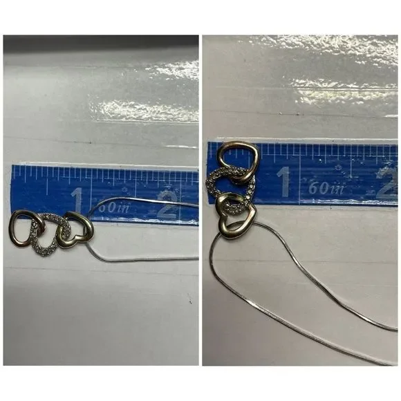 10KT Tricolor Triple Open Heart Diamond Pendant Necklace 16” Long