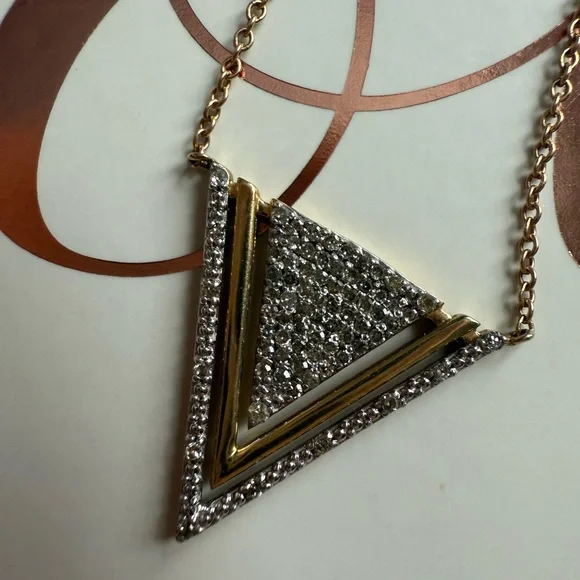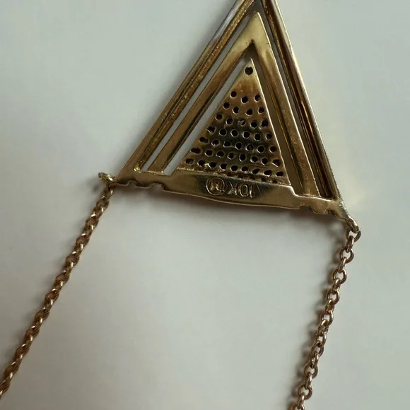 10k yellow gold triangular pendant necklace with genuine diamonds adjustable length up to 19 inches not including pendant