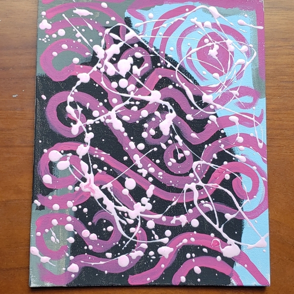 This is ninth in my Pink Elephants series.It has classic light pink paint drizzled over a fun abstract background. There is a lot of color in this one, making it a versatile piece...