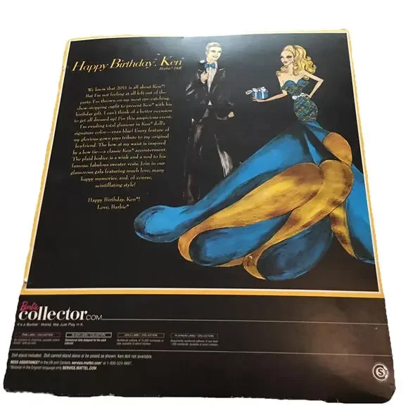 Celebrate a classic with the 2010 Happy Birthday Ken Barbie, a special 50th Anniversary edition that brings a touch of nostalgia to any collection. Dressed in his signature fashion, this Ken doll is a must-have for fans and collectors alike. From the Anniversary Dolls product line, he comes as a complete set including the doll, ready to join any display or play scenario.Crafted with the attention to detail that Barbie enthusiasts expect from Mattel, this doll captures the timeless appeal of one of the most iconic toy lines of the era. Perfect for those who appreciate the enduring charm of Barbie and her companions, this Ken doll is a remarkable piece representing a half-century of celebratory craftsmanship.