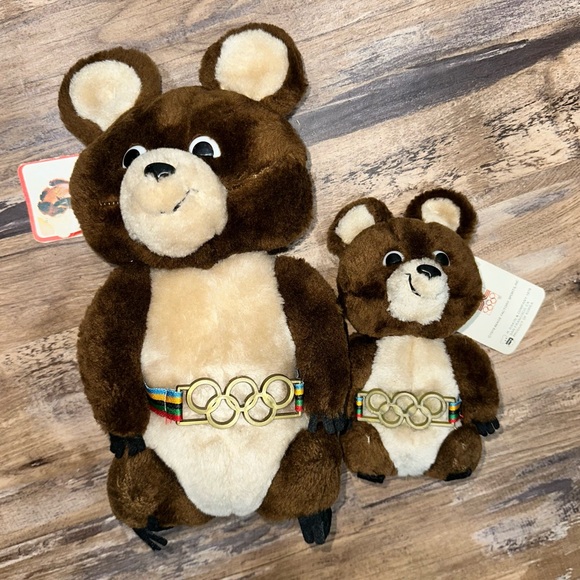 Vtg 1980 Olympics Games Mascot Misha plush bears 8” & 12” set of 2 with tags