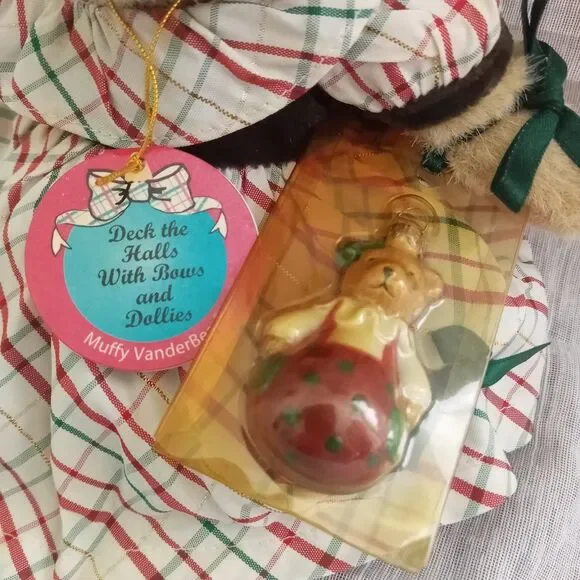 VTG Muffy Vanderbear Bear / Ornament / Stand NWT Deck the Halls Bows Dollies ´99