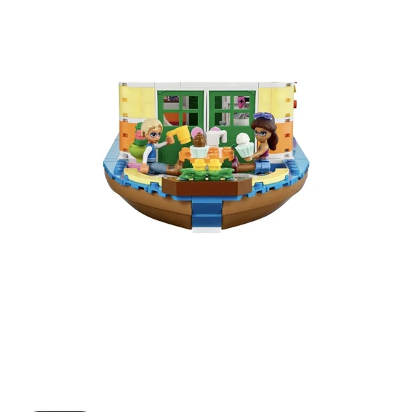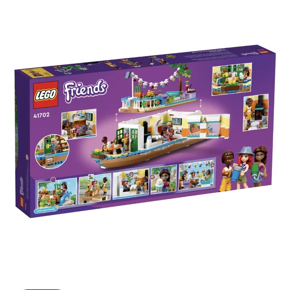 Friends Retro-styled eco-houseboat model – Let kids live out an environmentally friendly lifestyle aboard the Friends Canal Houseboat (41702), which comes with a deck-top market gardenLots of roles to play – This boat toy comes with 4 mini-doll toys including Friends Mia, an animal toy, a bicycle and a separate market stall to spark hours of imaginative playBig fun for little nature-lovers – Kids who care for the environment will delight in growing their own produce, helping the team upcycle the boat and selling their food so the community can shop localEndless storytelling – With this Friends set, kids can repair the boat, water the plants with the watering can, play on the games console, or hang with friends and play with the kitten on deckFeatures galore – On deck is a shower and gardening accessories. The deck is removable for easy access to the cabin with its kitchen and cooking implements, gaming station, sleeping area and toilet