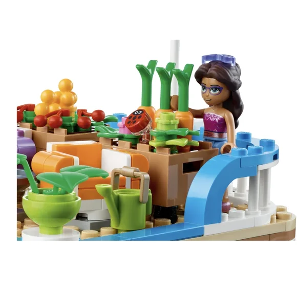 Friends Retro-styled eco-houseboat model – Let kids live out an environmentally friendly lifestyle aboard the Friends Canal Houseboat (41702), which comes with a deck-top market...