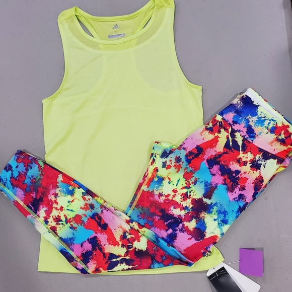 Love this set! Adidas Tank (Girls Large) in Semi Frozen Yellow. CK Performance leggings (Ladies small)Bin pnS