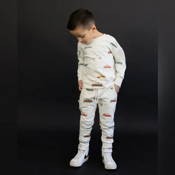 CHILDHOODS Rib knit pant cars on natural - CC long sleeve and jogger set