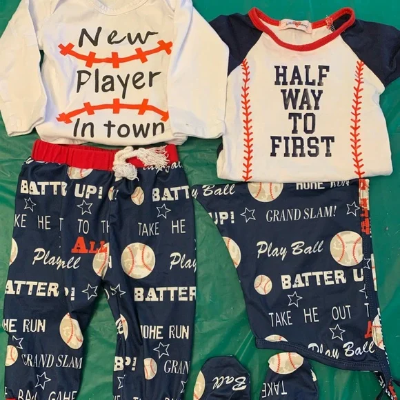 1/2 birthday 6 months baseball theme party party accessories 2 onesies (size 6M)