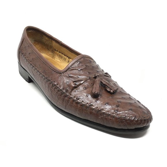 Zelli Loafers Shoes Size 13 Brown Full Ostrich