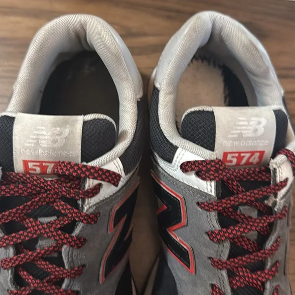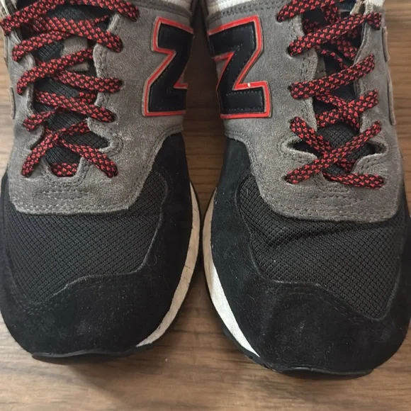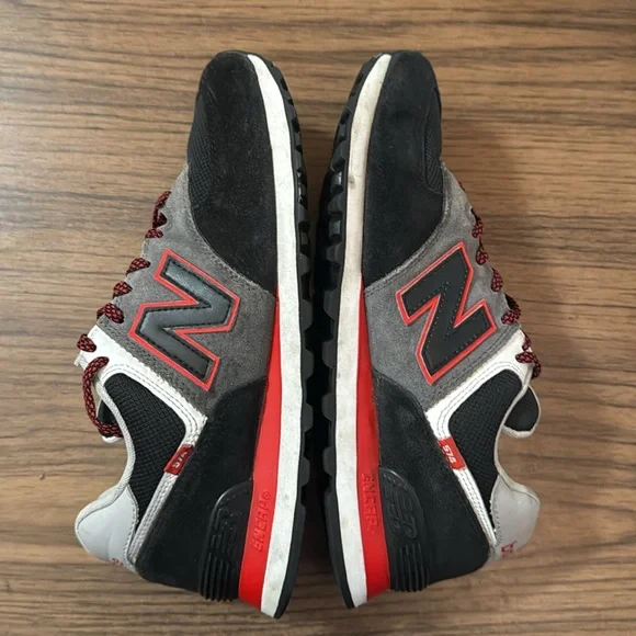 Step out in style with New Balance men´s sneakers. Featuring a sleek black and gray design, these shoes offer both comfort and durability. Perfect for everyday wear.Size 9The most New Balance shoe ever’ says it all, right? No, actually. The 574 might be our unlikeliest icon. The 574 was built to be a reliable shoe that could do a lot of different things well rather than as a platform for revolutionary technology, or as a premium materials showcase. This unassuming, unpretentious versatility is exactly what launched the 574 into the ranks of all-time greats. As hybrid road/trail design built on a wider last than the previous generation’s narrow racing silhouettes, the 574 offered a uniquely versatile mix of new, different, uncomplicated, rugged, durable, and comfortable that was adopted as a closet staple across the globe. That’s why today, the 574 is synonymous with the boundary defying New Balance style, and worn by anyone.Lightweight EVA foam cushioning in the midsole and heel increases comfortENCAP midsole cushioning combines soft foam with a durable polyurethane rim todeliver all-day supporSuede and mesh upper100% AuthenticImportedStyle Number: ml574sm2Condition: ExcellentOpen to reasonable offers