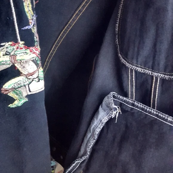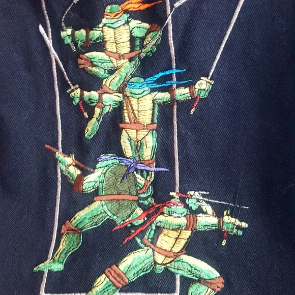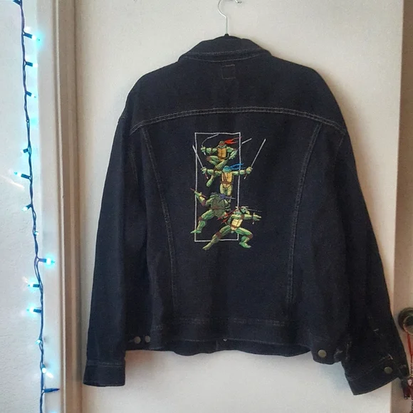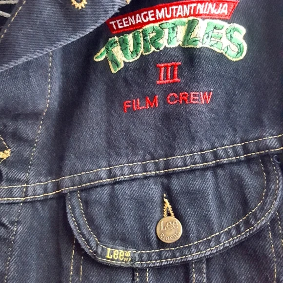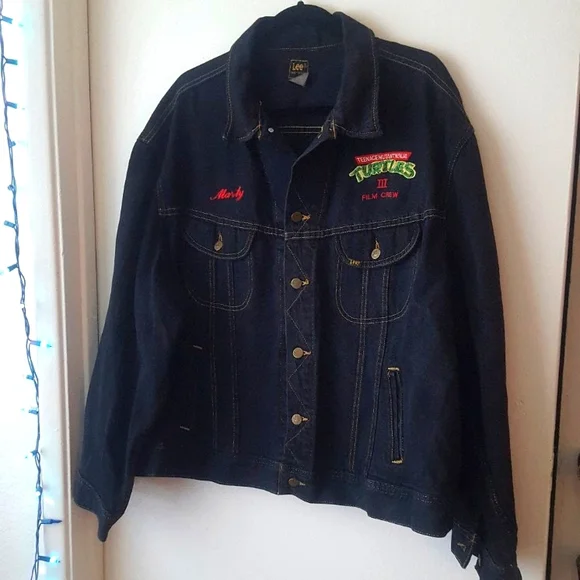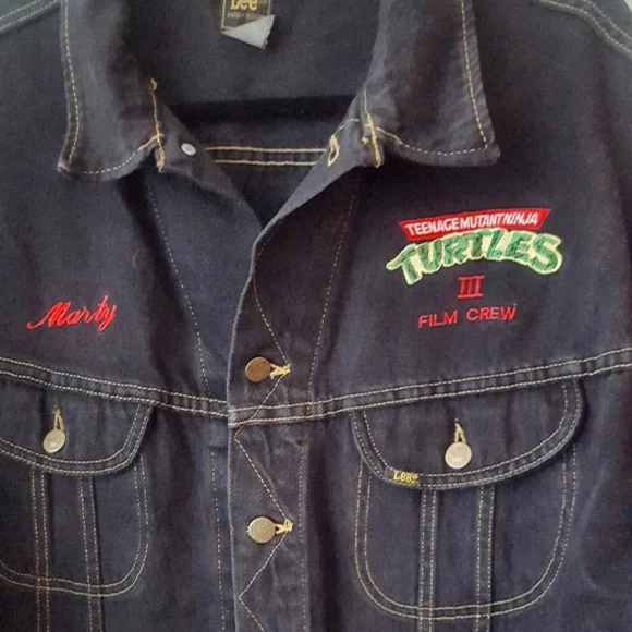 One of a kind!! Very Rsreamazing TMNT collector piecevintage Lee black denim jacket, 1993.amazing embroidery of the four turtles on the back,Teenage Mutant Ninja Turtles 3 Film CrewMartyall embroidered. 2 interior stash pockets.Jacket is in excellent collector condition Eastman, Laird, TMNT, comic, Hollywood, film, studio, movies, animation, collectible, collector´s, Teenage Mutant Ninja Turtles, 80s, 90s, y2k, vintage, denim, Turtles, crew, media,