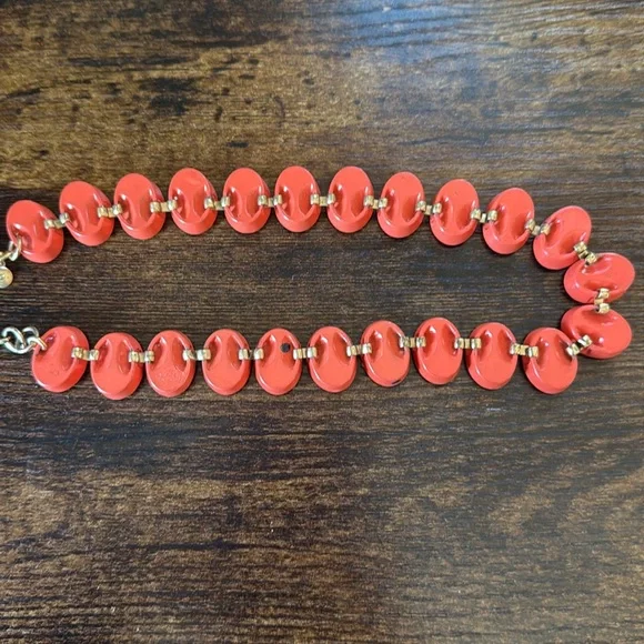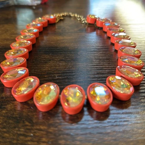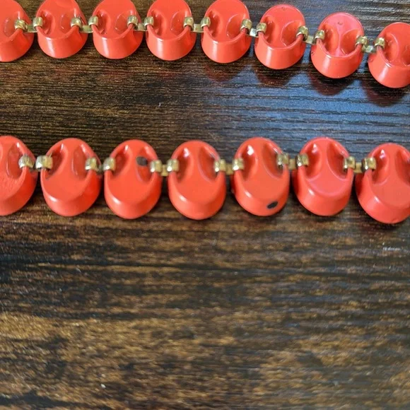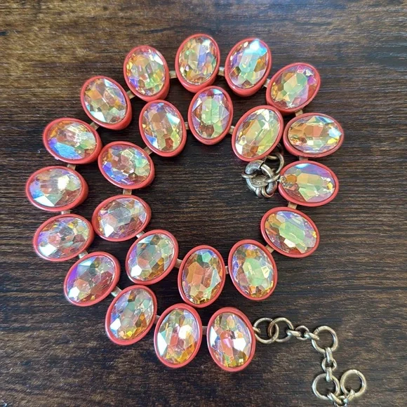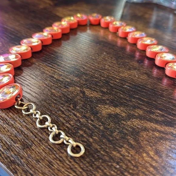 Vintage and hard to find. The stones are incredibly iridescent and have a ton of sparkle. There are some chips/markings in some of the coral enamel. Not noticeable when wearing. Most are on the back and bottom. Definitely a piece you want to add to your collection!