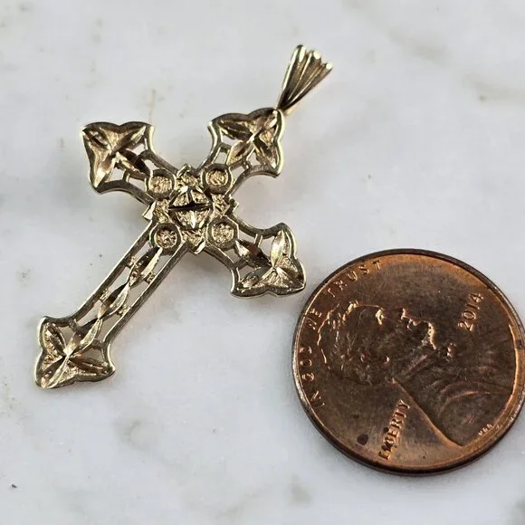 Womens Vintage 14K Gold Religious Michael Anthony Cross Pendant, 1.8g E3937