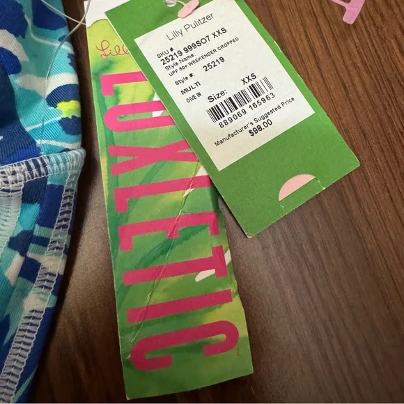 Our Luxletic® collection keeps you feeling and looking your best on the court, course, and beyond. We balance functionality and sporty-chic style with activewear that prioritizes:• UPF 50+ sun protection• Moisture wicking• Versatile performance fabrics• All-day comfortSize: XXS (00)Color: Multi Style: Weekender Cropped Print: Dive In21” Inseam—Additional Measurements In Photos Condition: New with TagsFabric: 88% Polyester, 12% Spandex, Machine Wash, Tumble DryL BH
