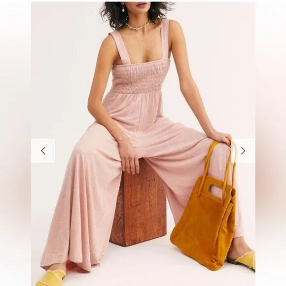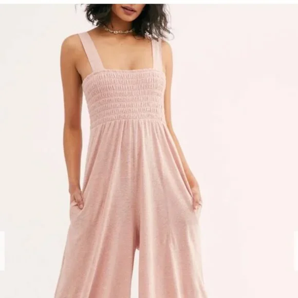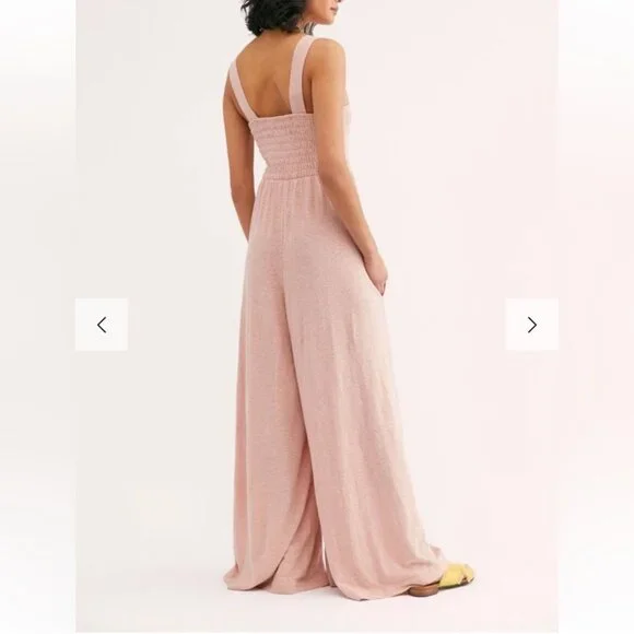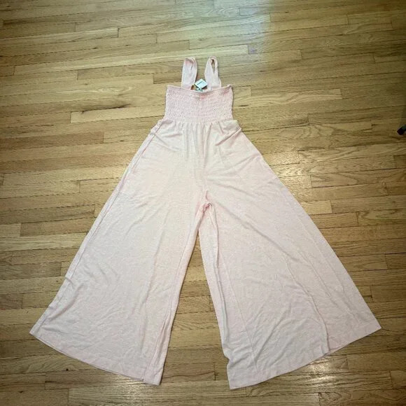 Free People Homecoming Jumper NWT Size XSIn a comfortable linen-blend fabrication, this easy jumpsuit features a stretchy smocked design at the bust and an ultra wide leg silhouette.What’s Care FP? This product was consciously made to reduce our footprint and supports our mission to be a little bit better every day.Free People BeachComprised of textured, free-flowing wardrobe staples and seasonless knitwear, free-est is our beloved in-house collection for every day and any wearInner label marked to prevent in store returns