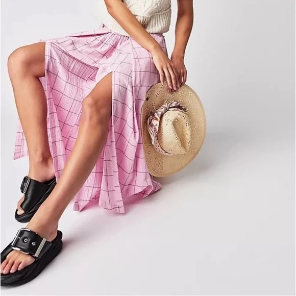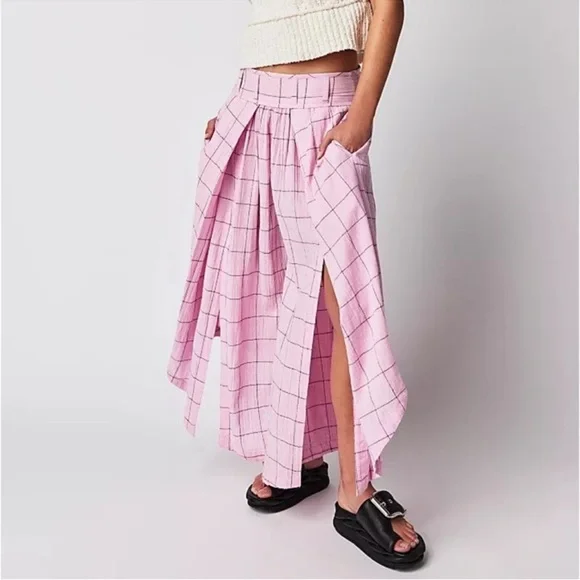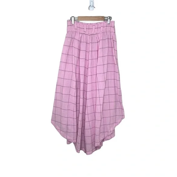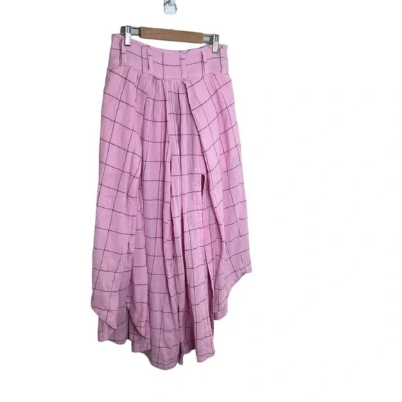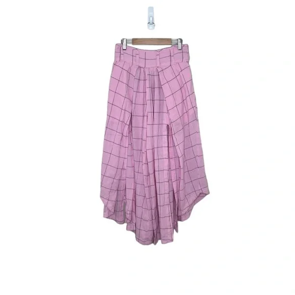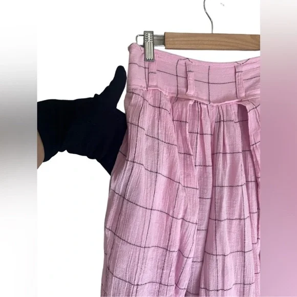 NWOT Free People Lunar Cove Wide Leg PantsCondition: New Without TagDepartment: WomenBrand: Free PeoplePattern: CheckClosure: Pull OnFit: RelaxedLeg Style: Wide-LegColor: PinkStyle: HaremType: TrouserModel: lunar Cove Wide-Leg PantsGarment Care: Machine WashableOccasion: Casual, TravelSeason: Fall, Spring, SummerFeatures: Defined waistband, exaggerated paneling at the top, curved hemline, slit hemlines, side pockets, grid pattern throughout, pockets, comfortSo chic to just throw-on-and-go, these pants pair effortlessly with your favorite tee or sleek crop top for endless ways to wear.