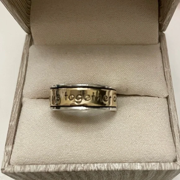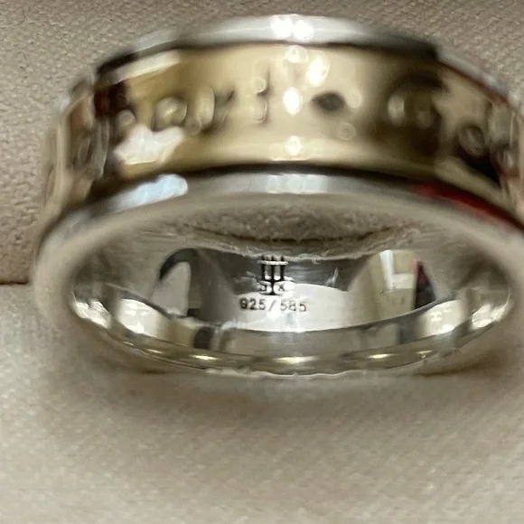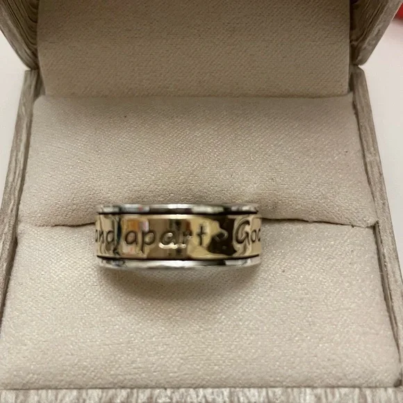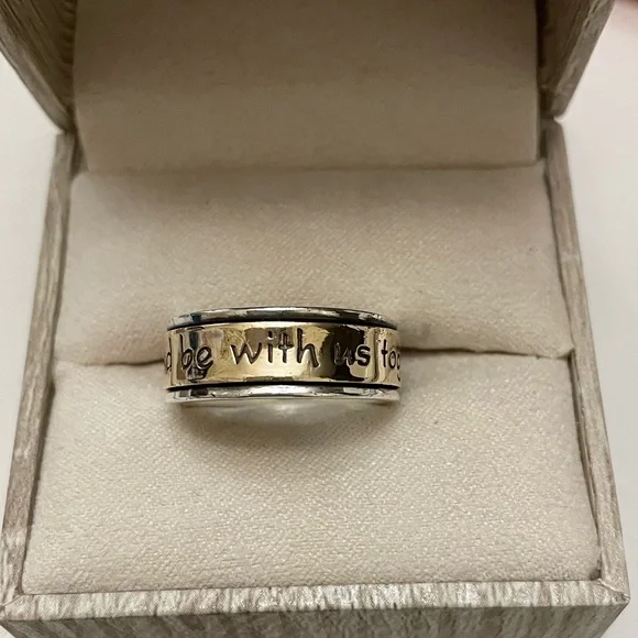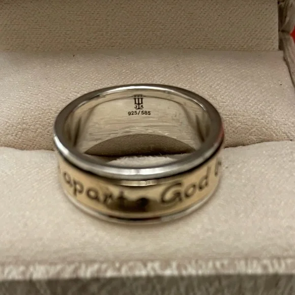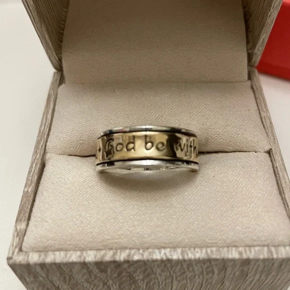 Retired James Avery God Be With Us Band in 14kt Gold and Sterling Silver Size 7 1/2In Excellent Condition Comes with a cloth pouch