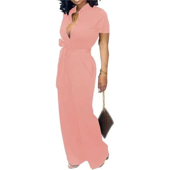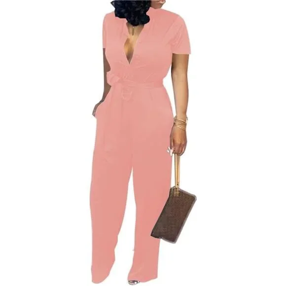 *Fabric type95% Polyester, 5% Spandex*Care instructionsMachine Wash*OriginImported*Fur description95% Polyester, 5% Spandex*Design:V neck, Full length pant, Elastic waist,Plain color, Front decorative buttons,short sleeve,Long pants jumpsuit with pocket, Belted wrap romper*Occasion: Suit for Casual Outdoor,Party, Cocktail, Evening, Club, Wedding,Vacation, Beach, jogging,Daily life*High quality stretchy and soft fabric made the fashion jumpsuit works with most body types.*Match:Perfect to pair with sneakers, heels or sandals.*This casual jumpsuit with high quality and unique design, simple but not dull, casual but sexy.This is a must have in your spring and summer wardrobe.*Casual Solid Short Sleeve Elegant Stand Collar Button Down Long Pants Rompers Straight Club Outfits With Pockets Belt*Casual V Neck Short Sleeve Printed Jumpsuits Elegant Buckle Ziper Long Pants Rompers Straight Club Outfits With Pockets Belt*Casual V Neck Short Sleeve Printed Jumpsuits