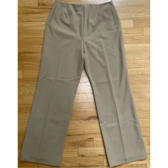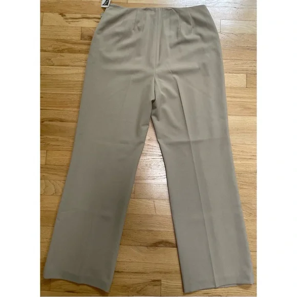 Features faux front slant pockets and side zipper closure. Fabric: (Shell) 68% Polyester, 29% Viscose Rayon, 3% Spandex. (Lining) 100% Acetate Size: 12Condition: NWT attached. This item has never been worn/shows no signs of wear. Color: Khaki*Please keep in mind that colors may show up differently on different screens/devices. Photos were taken on a combination of a white background and in natural light-no flash/filters were used on any of the photos. We recommend taking a good look at all item details before ordering. This item has never been worn, has no visible signs of use, and is in good vintage condition.