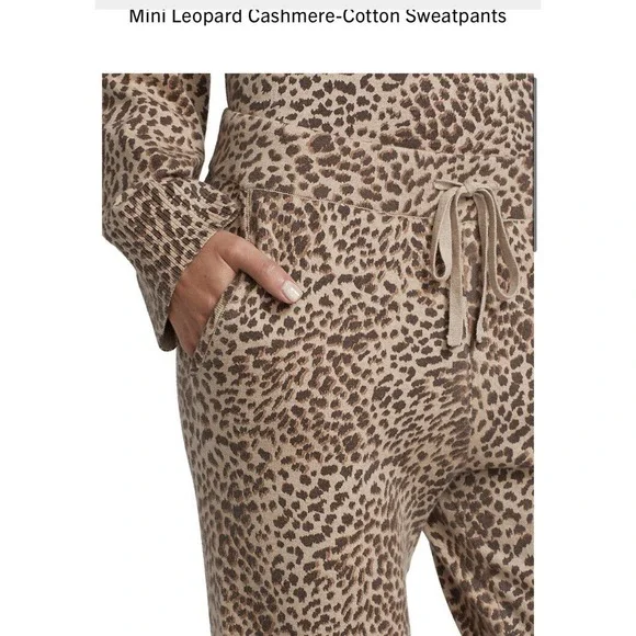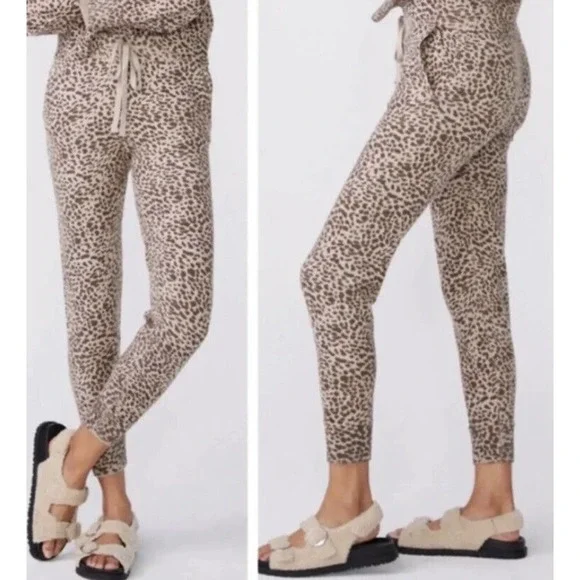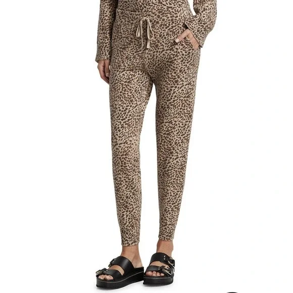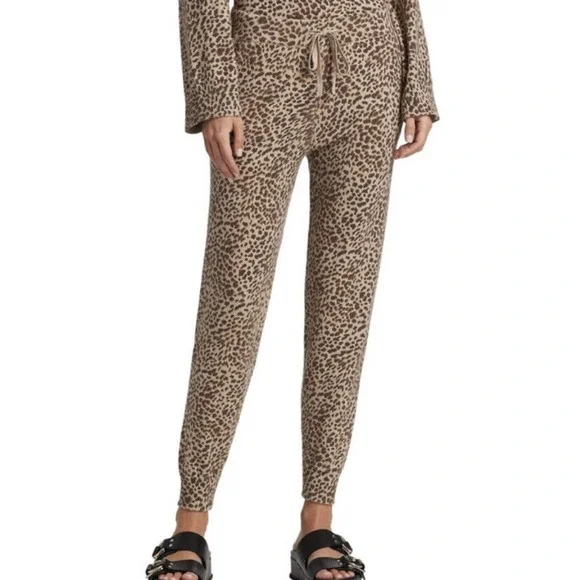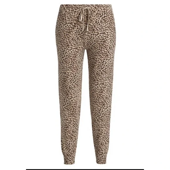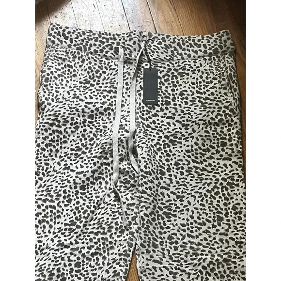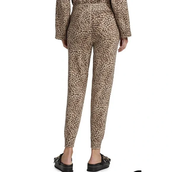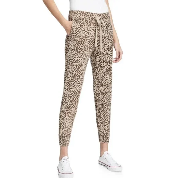 MONROW •L• Mini Leopard Sporty Sweatpants Latte Brown Cashmere Cotton NWT $248.