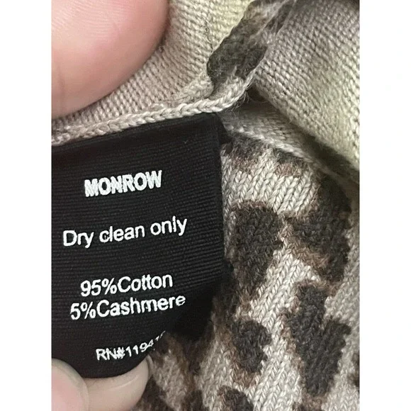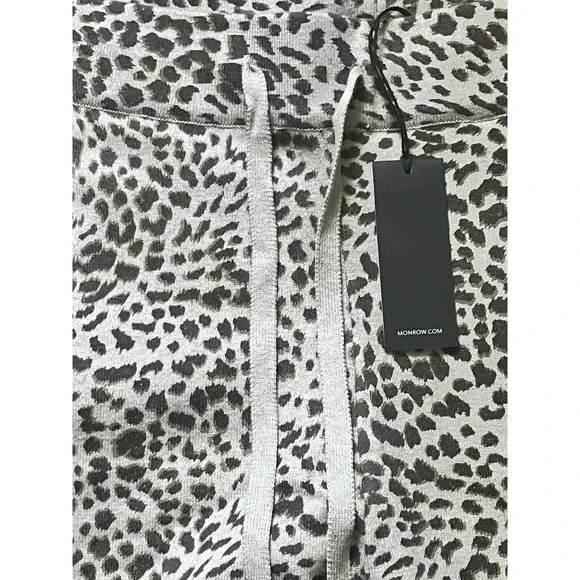 MONROW •L• Mini Leopard Sporty Sweatpants Latte Brown Cashmere Cotton NWT $248