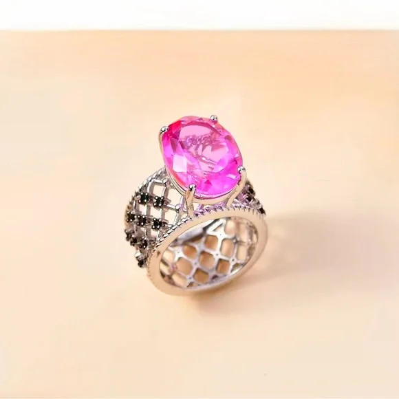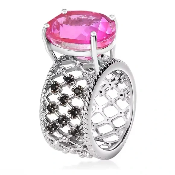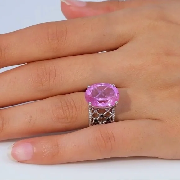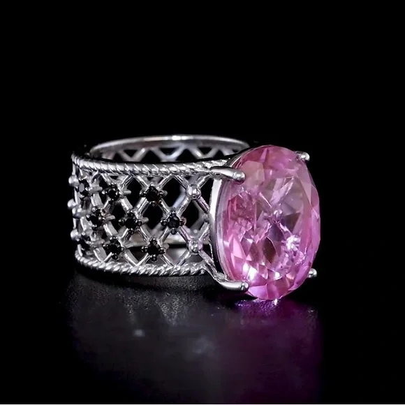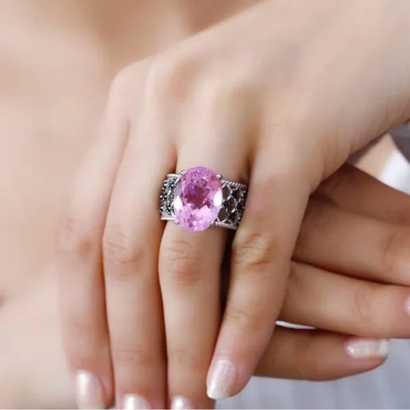 Brand New! Lilac Quartz and Black Spinel Sterling Silver Ring Sz 8 10.75 ctw