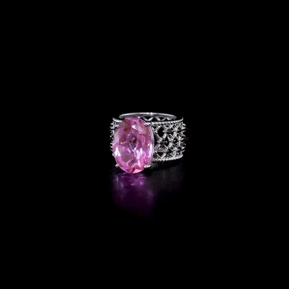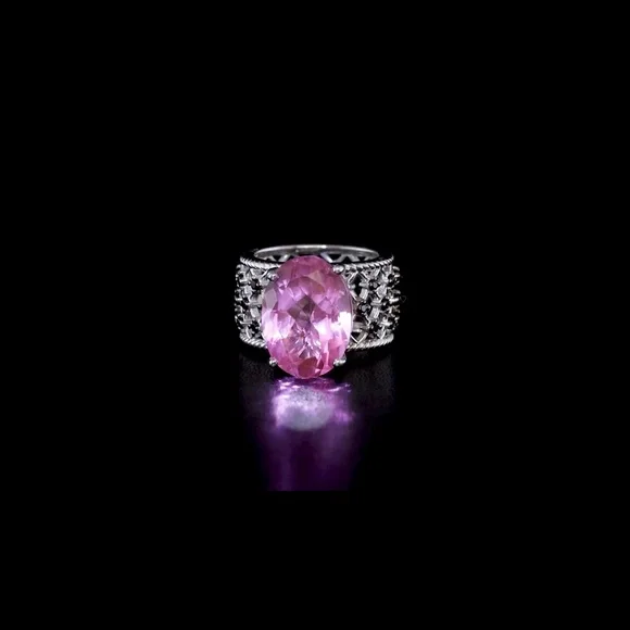 Brand New in pouch or box. Elegant ring featuring a vibrant lilac quartz and striking black spinel set in sterling silver. Perfect for adding a pop of color to any outfit.This...