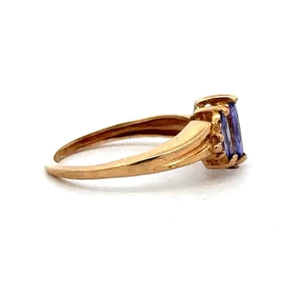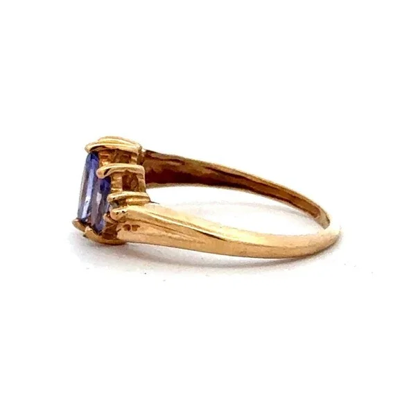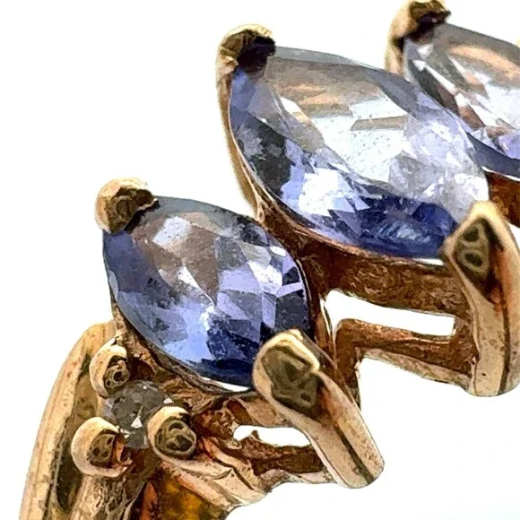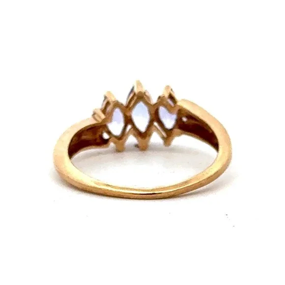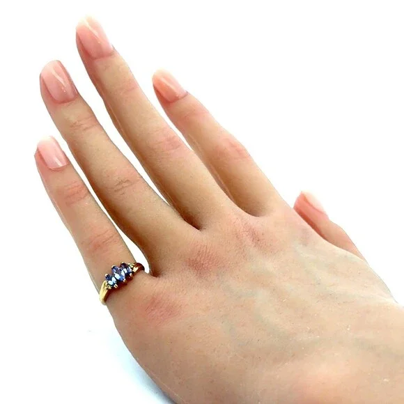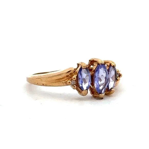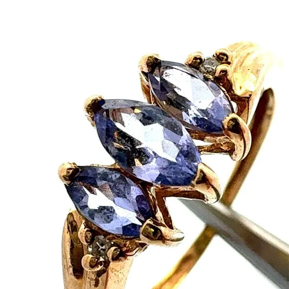 Estate 10k Yellow Gold Timeless 3 Stone Tanzanite Diamond Accents Size 3.75 Ring
