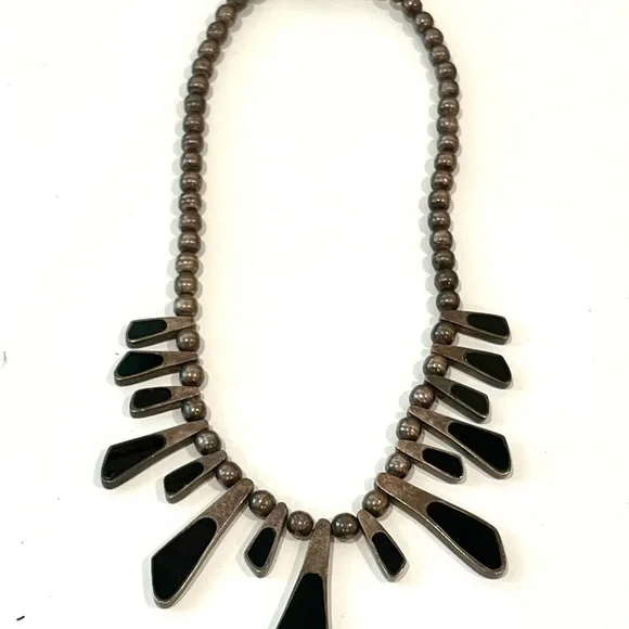 Vintage Turquoise, Black Onyx and 925 Sterling Silver Reversable Necklace