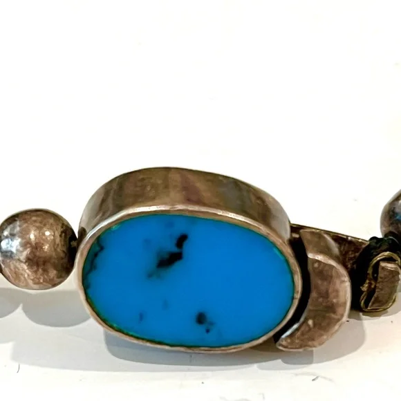 Rare and stunning reversible turquoise and black onyx vintage 925 Sterling silver statement piece with fabulous turquoise and silver closure. One of a kind!